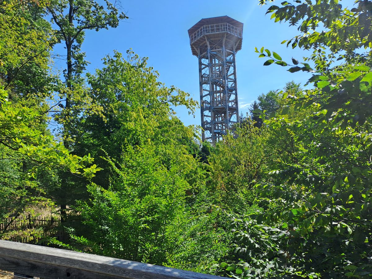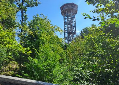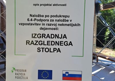 Ogled se je končal z vzponom na 25m visoki razgledni stolp, ki je trenutno ena od zadnjih pridobitev posestva. Z vrha smo videli daleč po okolici, videli cerkev svetega Florijana in malo dalje Donačko goro.